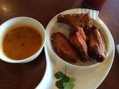 Mosa is known for its delicious Chinese and Thai food, but some of the best wings in the city can also be found on the menu. The Rainbow Wings feature a Panang Curry dipping sauce that includes fresh lime, lemongrass, and panang curry. The curry is sweet, spicy, and tangy all at once. You CAN taste the rainbow. The sauce is served on the side so the wings stay nice and crisp, so what you do with the extra is up to you.